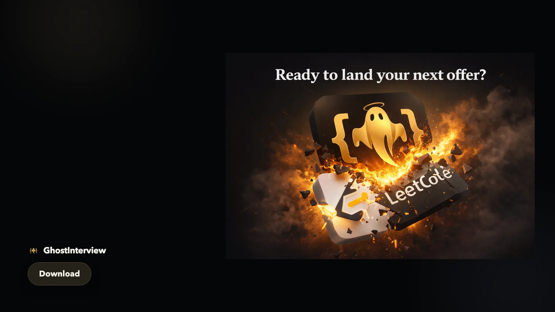 GhostInterview is an AI interview copilot for software engineers, with stealth help for LeetCode, system design, and OOD interviews that stays invisible during screen sharing on supported setups.