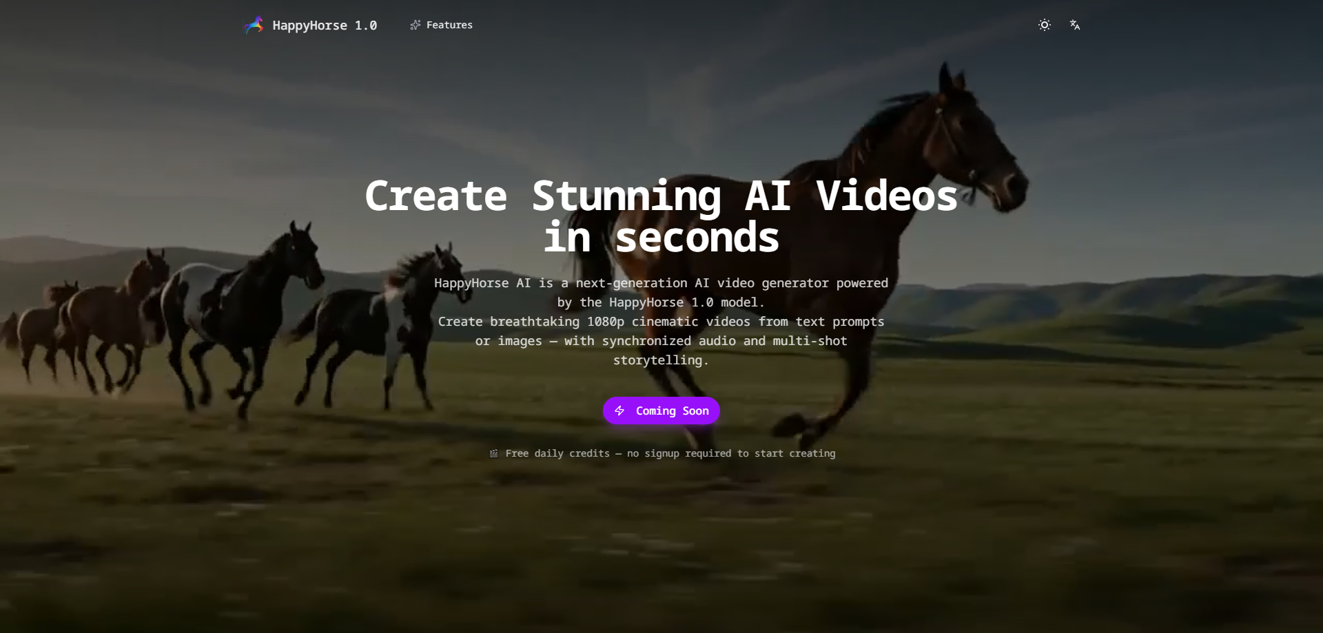 HappyHorse AI is a next-generation AI video generator powered by the HappyHorse 1.0 model.